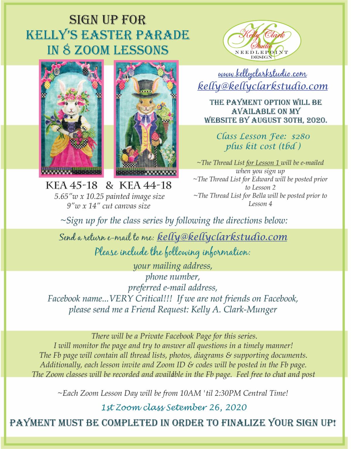 Send Suzie a canvas of your choice purchased from the shop and she will write a typed, custom guide for your piece and pull the threads.  We’ll pop everything back in the mail to you in time for the class.